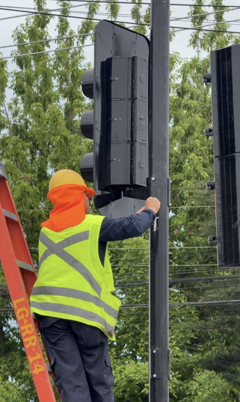 En la intersección de Camino Tuniche con la Ruta H10-210 se está instalando un nuevo semáforo. Además, se están construyendo veredas y aceras para mejorar la seguridad de peatones, ciclistas y vehículos.