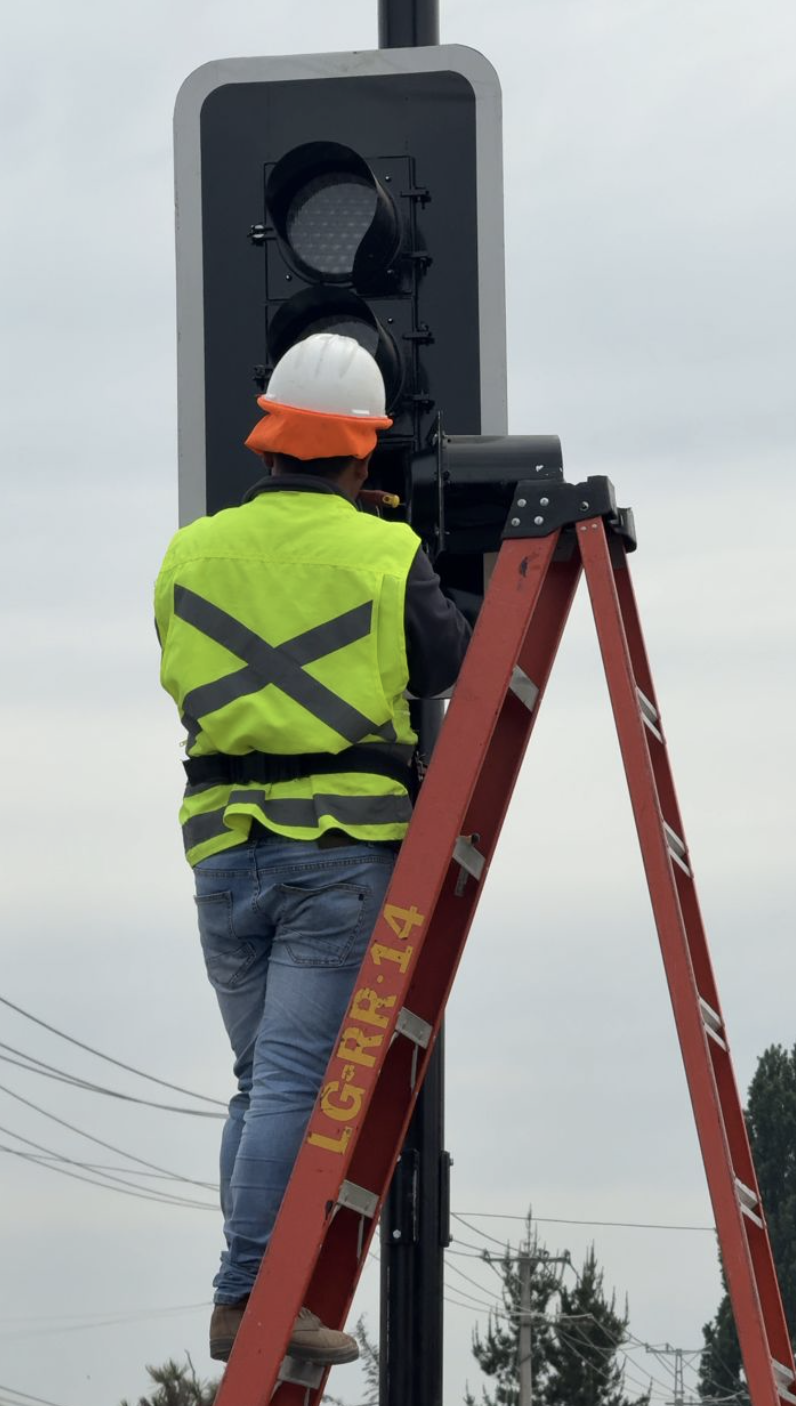 En la intersección de Camino Tuniche con la Ruta H10-210 se está instalando un nuevo semáforo. Además, se están construyendo veredas y aceras para mejorar la seguridad de peatones, ciclistas y vehículos.