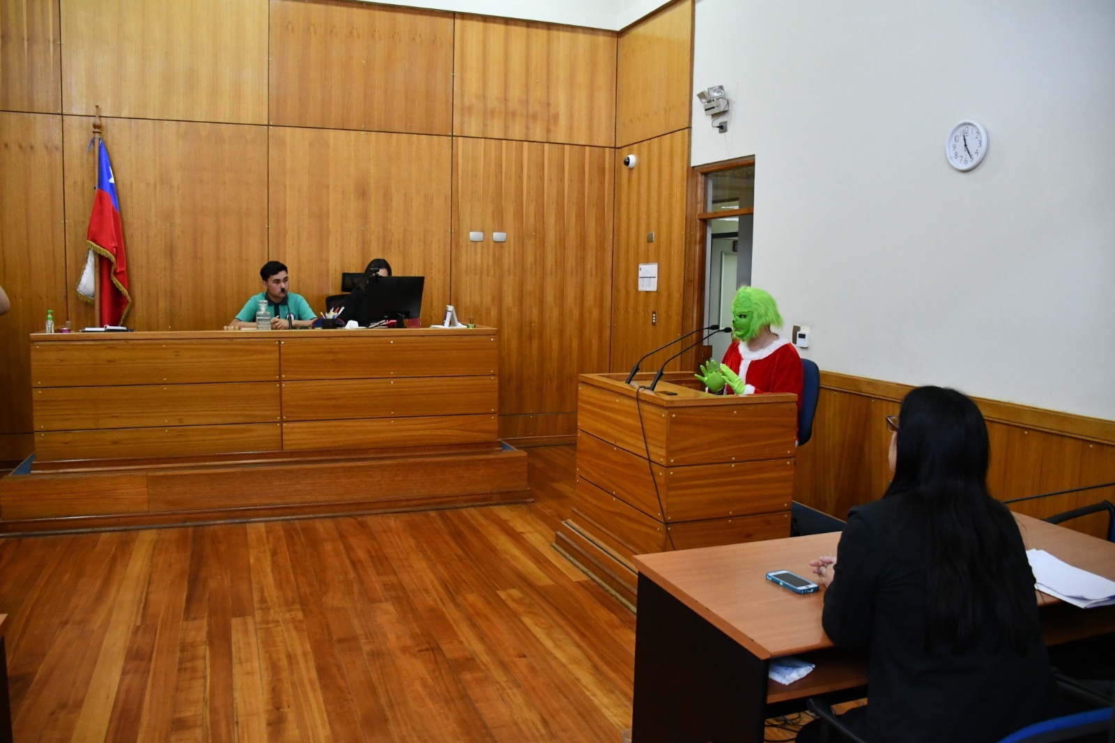 Rengo. — En una inusual y educativa jornada, estudiantes de 1° a 3° Medio del Liceo Industrial Esteban Leyton Soto participaron en un ejercicio práctico que les permitió desempeñar los roles de juez, fiscal y defensor en una audiencia de formalización realizada en el Juzgado de Garantía de Rengo. La actividad recreó un caso ficticio en que “El Grinch” fue imputado por el delito de robo en lugar no habitado tras sustraer juguetes destinados a niños y niñas de la ciudad en Navidad.
