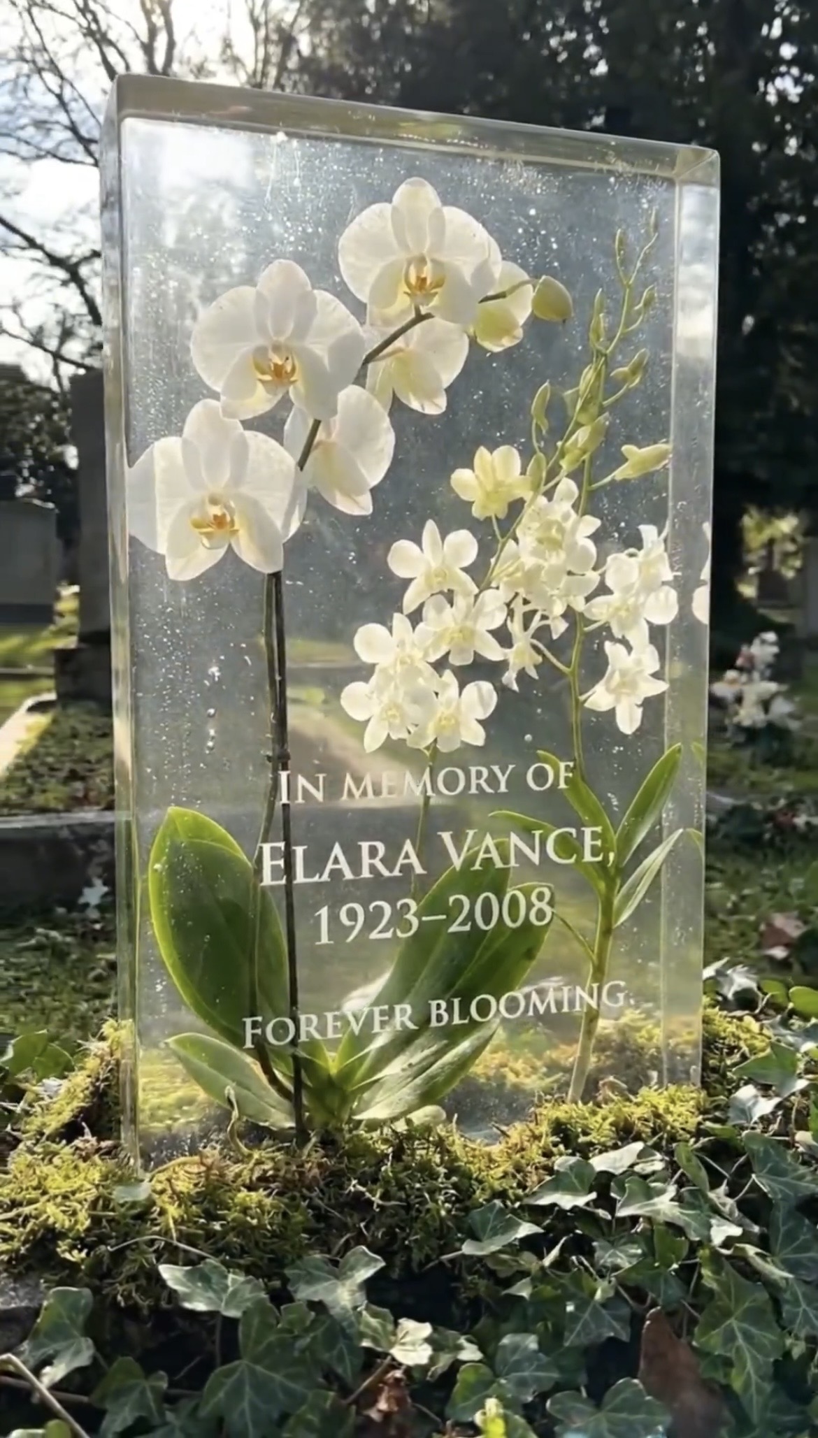 Una de estas propuestas consiste en encapsular flores naturales —como orquídeas— en estructuras transparentes especialmente diseñadas para su conservación. Estos memoriales permiten integrar la vida vegetal con el recuerdo eterno, creando un espacio visualmente bello y profundamente significativo. El resultado es un homenaje que no solo preserva la memoria, sino que también transmite serenidad, delicadeza y conexión con la naturaleza.