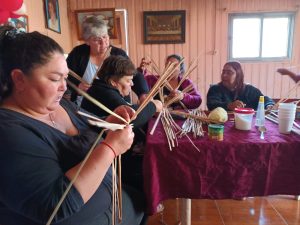 El primer grupo está integrado por cinco mujeres que se transformaron en artesanas en fibras vegetales. Aprendieron la cestería en