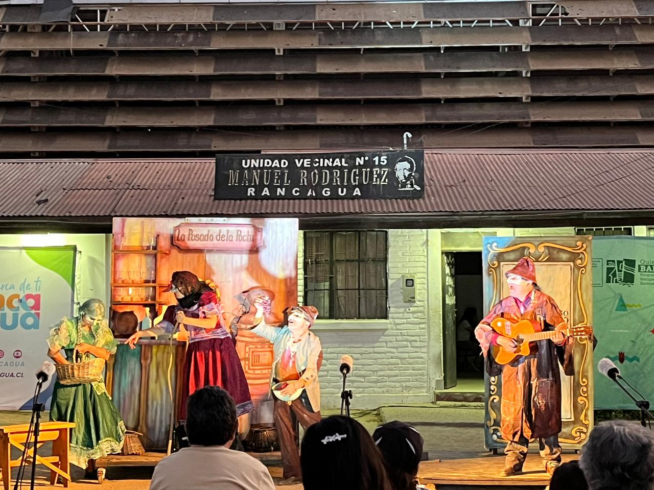 En el marco del mes aniversario del Barrio Manuel Rodríguez de Rancagua, se llevó a cabo una actividad cultural organizada por los programas “Quiero Mi Barrio” (QMB) del Ministerio de Vivienda y Urbanismo, y “Somos Barrio” de la Subsecretaría de Prevención del Delito. La sede de la Junta de Vecinos Manuel Rodríguez fue el escenario donde se presentó la obra de teatro Nacimiento del Tue Tue, un relato que rescata la tradición oral y la identidad de la zona central de Chile a cargo de la compañía Impronta.
